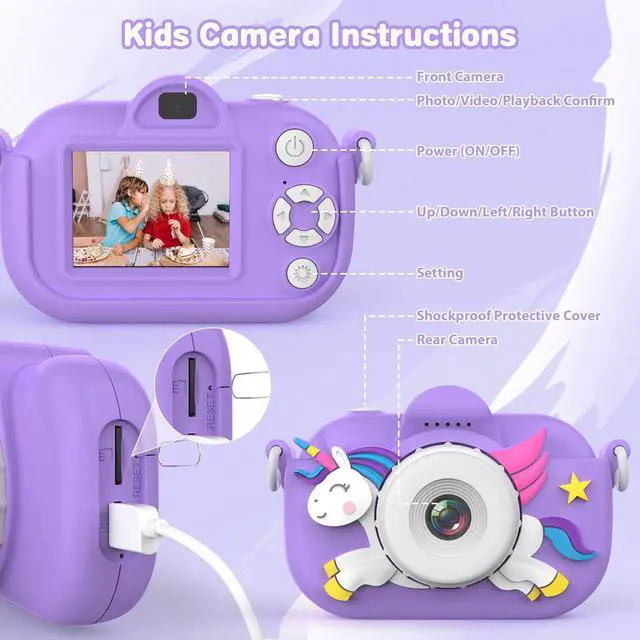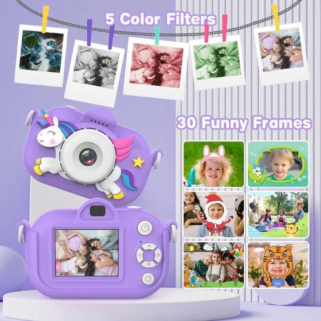 Our girls boys camera has a professional 1080P HD video function that allows kids to record their happy times during travel or important festivals such as Birthday, Christmas, Halloween, Easter, etc.