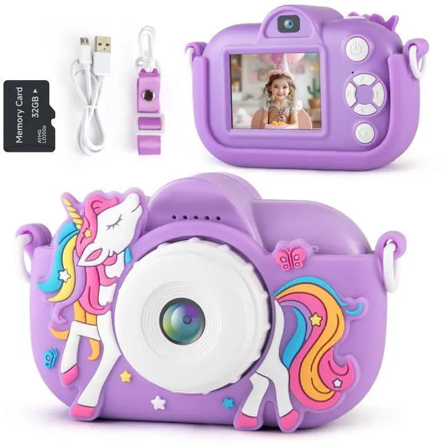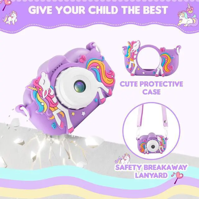 Multi-Function Children Digital Camera: The kids camera supports selfie, video recording, playback, MP3 music player, 4 puzzle games, time-lapse shooting, auto off, one-button switching to take pictures mode, date stamp and other interesting functions. These powerful functions can not only entertain children, but also help them stimulate their creativity and hands-on thinking ability. It is great toys for kids to become a photographer