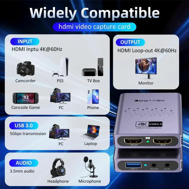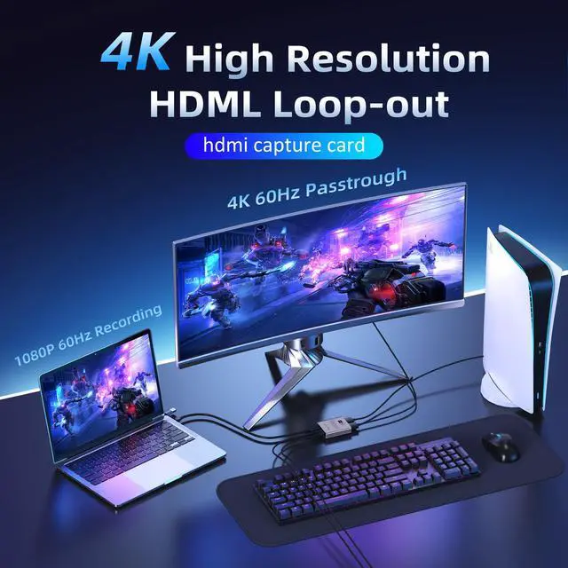 4K HDMI Video Capture Card for Nintendo Switch 2, PS5, Xbox, PC, Streaming- USB 3.0 Game Capture Device with 2K 30fps, Compatible with Broadcasting, Mobile Cameras & More