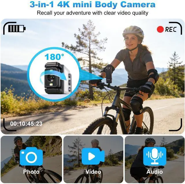 Once fully charged, the camera can record continuously for several hours, making it ideal for long-distance travel, cycling, security work, or everyday use.