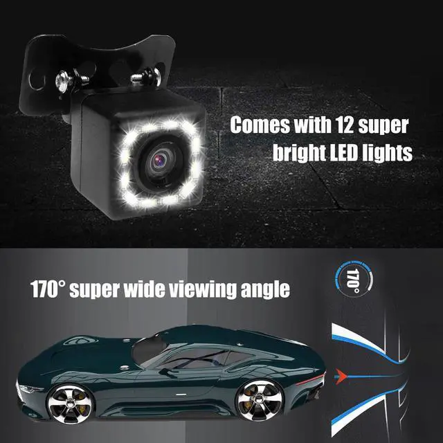 Car Backup Camera, Waterproof Ultra HD 12 LED Night Vision Rear View Camera, 170° Wide View Angle Long License Plate Frame Camera, Universal Cars, SUV