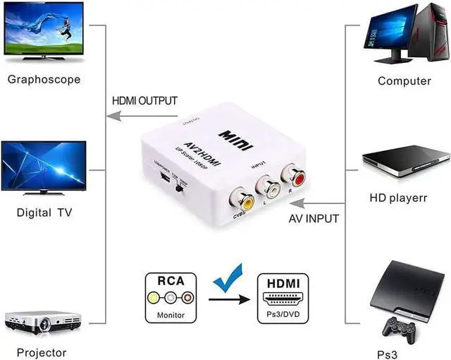 Attention & Package: Please ensure to connect this rca to hdmi converter to power source to make it work.