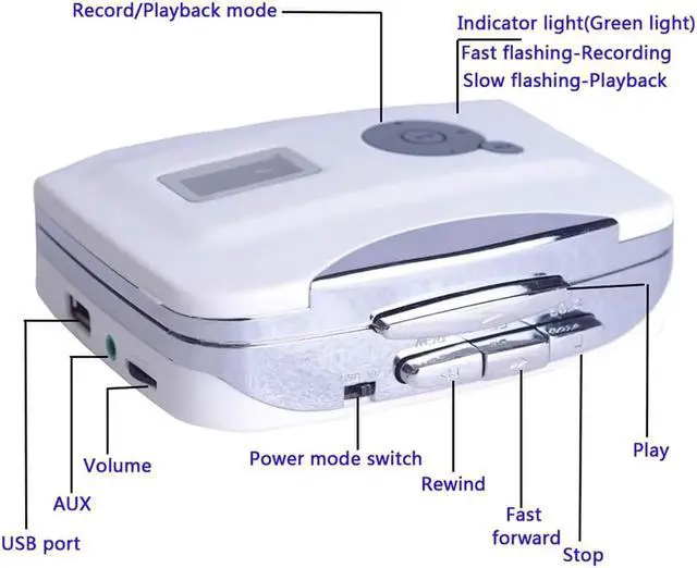 • Stereo Cassette Tape to MP3 Converter Player Portable Standalone Cassette Player Convert MP3 format To USB Flash Driver