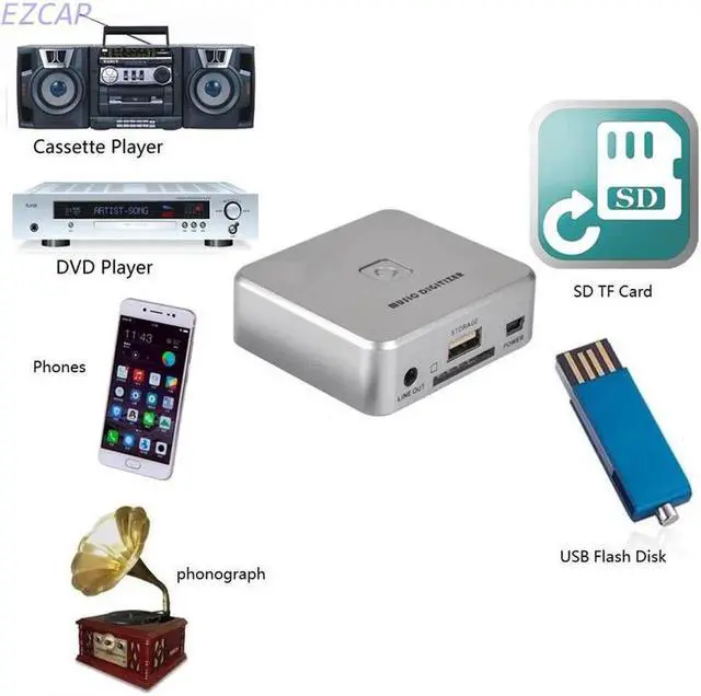 • Music Digitizer Converter Audio Recorder , Convert Analog Music to USB Flash disk/ SD Card /MP3 player, No pc Required