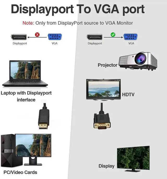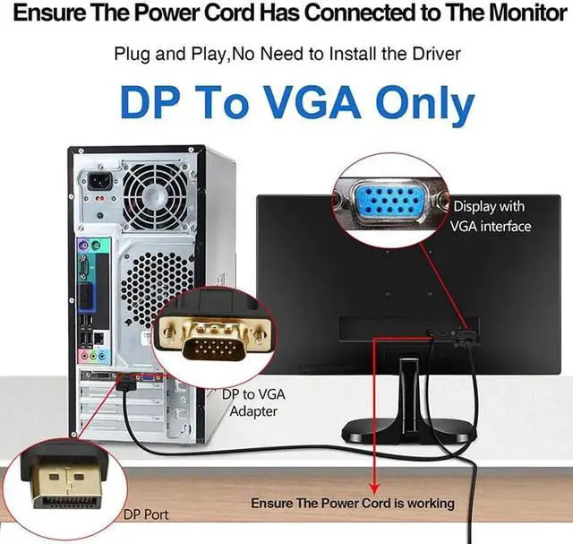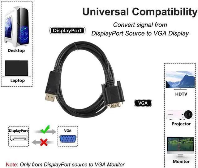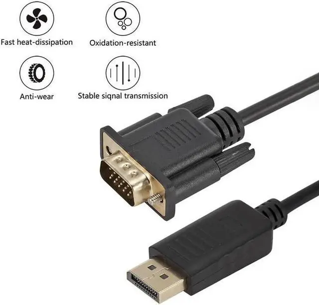 • Dp to Vga Conversion Cable, 1080P Standard Dp Male to Vga Male Cable for Notebook Computers