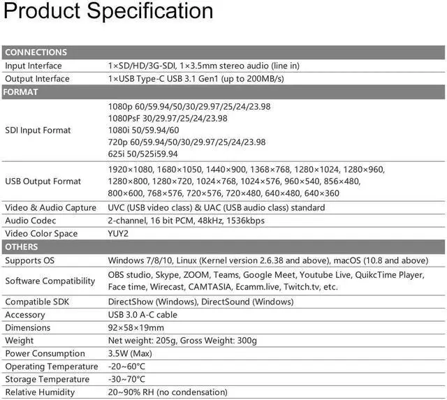 AVMATRIX UC1118 Video Capture Card SDI to USB 3.0 (Gen1) 1080P60 Uncompressed (YUY2) Video Capture with Line in for Video Conferencing Telemedicine Online Education on OBS, Zoom, Teams, PC/Mac