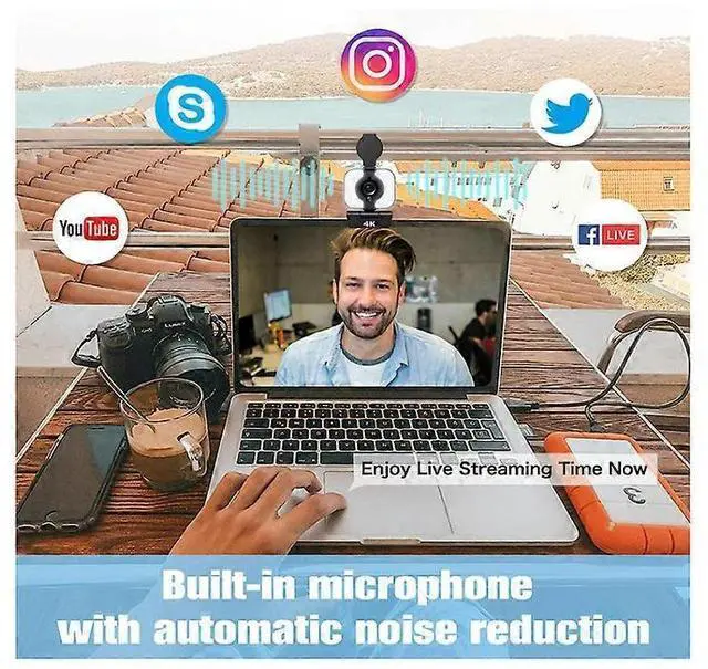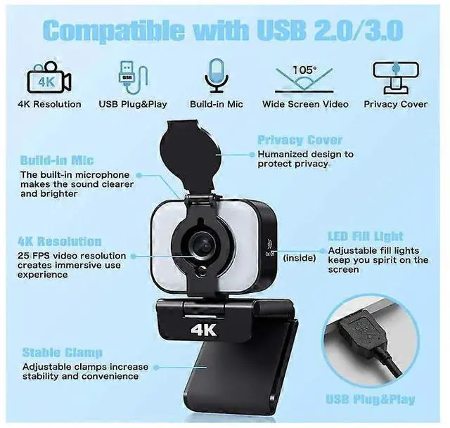 Elevate your video calls and streaming with this professional 4K webcam, featuring a versatile tripod and adjustable fill light for superior clarity in any setting.