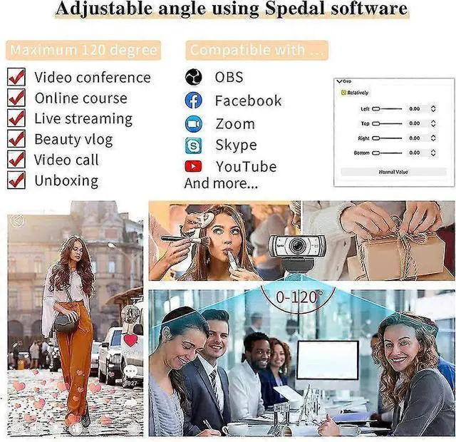 - **Spedal Software Compatibility**: Easily customize exposure, brightness, resolution, and more for optimized video streams. Plug and play setup ensures quick use without downloads.