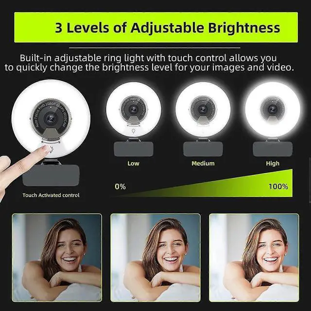 **Adjustable Ring Light**: Three lighting modes and stepless brightness control via touch, providing soft, glare-free illumination in any environment