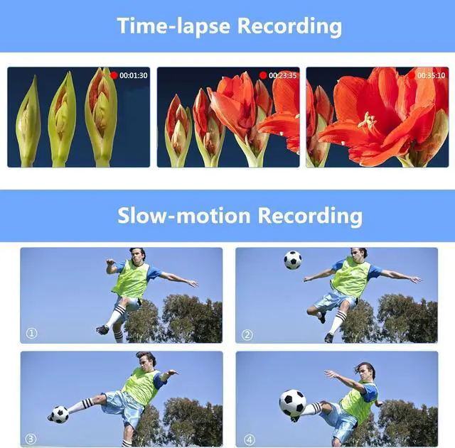Multifunctional Camcorder- This video camera supports recording while charging, video at intervals, low-speed video, motion detection, time-lapse, self-shooting and continuous shooting, data stamp, playback modes, TV output, and pause function etc. With the pause function, you can pause the video when you need to convert the scene without reopening a new file.