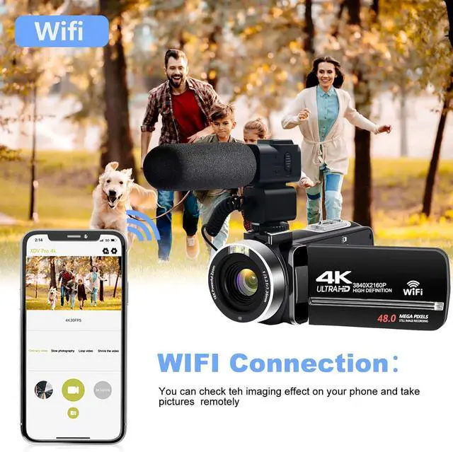 WIFI Connection & 2.4g RemoteYEEIN 4K video camera adds wifi function, it will turn your phone into a remote to control the camcorder, and browse images or download files from the camera to mobile phone by wifi for sharing with your friends. Also come with a 2.4G remote control, its remote control distance can be as long as 50 feet, no one will miss any precious moment.