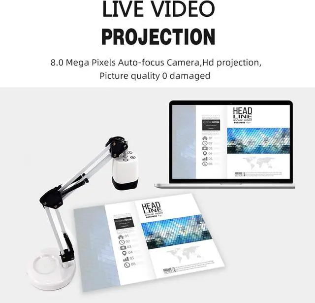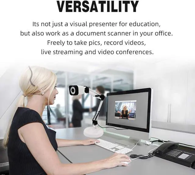 Small Size and Easy to Carry: This Usb Document Camera Unique Structure of Multi-jointed Arm and Rotatable Camera Head Makes it Possible to Capture Images and Videos from all Angles.Overhead Video Recording, its Burable Multi-joint Design Allows for Excellent Capture of 2D and 3D Objects.