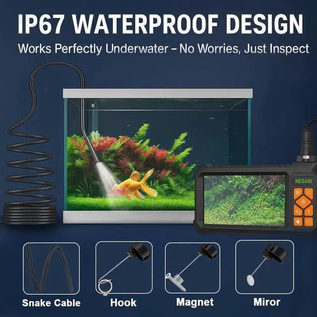 [Powerful Functional Camera] The endoscope's camera probe is equipped with 8 LED lights, with brightness adjustable via a button, so you don't have to worry about dark environments. The inspection camera also boasts IP67 waterproof functionality, making it suitable for harsh and wet conditions. The optimal focal distance (0.7 to 4.0 inches) allows you to inspect pipe walls clearly and closely