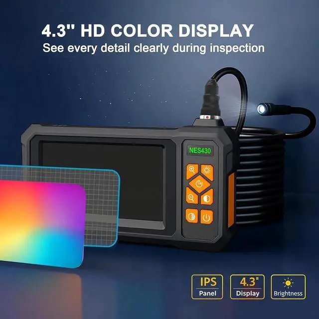 [High-Quality Display Screen] The endoscope camera features a 4.3-inch IPS screen, providing approximately 170° horizontal viewing angle. The high-sensitivity chip can capture 1920x1080P HD images in real-time. You can obtain vivid, saturated, and natural images from any angle