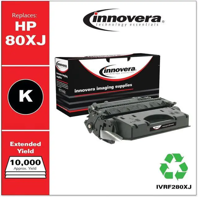 Innovera remanufactured monochrome laser print cartridges provide the same quality and performance as the national brands at an affordable price. These cartridges are remanufactured in ISO 9001:2008-certified facilities using the highest quality chemical toners and components to ensure they meet or exceed national brand page yield and print performanceguaranteed.
