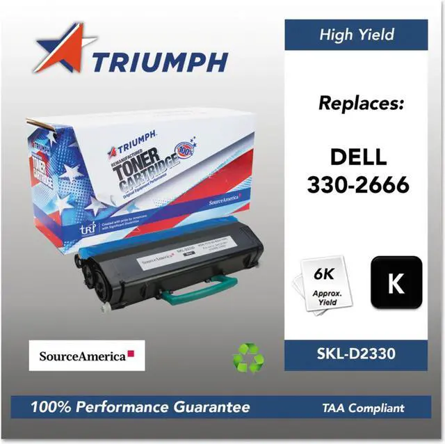 TheSKILCRAFT brand offers incomparable quality and performance, a broad product line and significant cost savings. SKILCRAFTimaging supplies are manufactured in ISO 9001:2000-certified facilities and are designed, engineered and produced to be a true alternative to the OEM. The entireSKILCRAFT line is 100% guaranteed. Through ISO 14001 certification and SFI (Sustainable Forestry Initiative) certification,SKILCRAFT helps to protect the environment by keeping used cartridges and cartridge components out of landfills. SKILCRAFT products are packaged by Americans with disabilities under the federal government's ABILITYONE Program. This toner cartridge is compatible withDell 2330D, 2330DN, 2350D, 2350DN. Device Types: Laser Printer; Color(s): Black; Page-Yield: 6000; Supply Type: Toner.