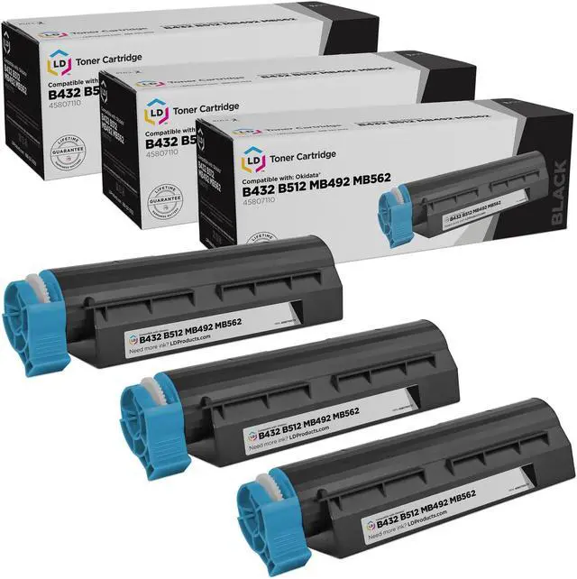 Save and print even more when you shop with LD Products! This listing contains (3) 45807110 black laser toner cartridges. Why pay more for brand name Okidata toner? This set is compatible with Okidata MB492, MB562w, B432dn and B512dn printers. Please note, retail packaging may vary and these cartridges will only work with printers purchased within the United States and Canada. The use of compatible printing supplies does not void your printers warranty. We are the exclusive reseller of LD Products brand of high quality printing supplies.