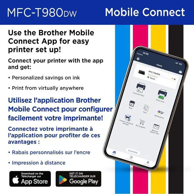 THE BROTHER MOBILE CONNECT APP: Put the power of printing at your fingertips. Go mobile with the Brother Mobile Connect app(7) that delivers easy onscreen menu navigation for printing, copying, scanning, and device management from your mobile device.