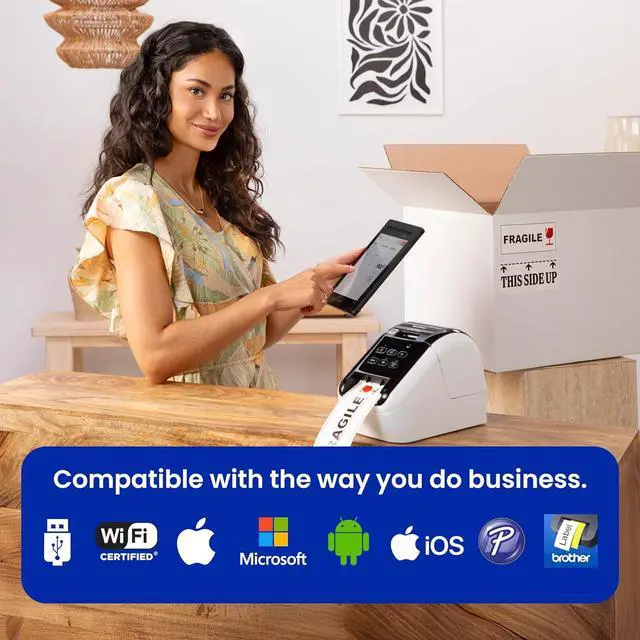 Brother QL-810Wc Professional Label Printer with USB and Wi-Fi connectivity, ultra-fast printing up to 110 labels per minute with standard address label in monochrome, black & red printing available