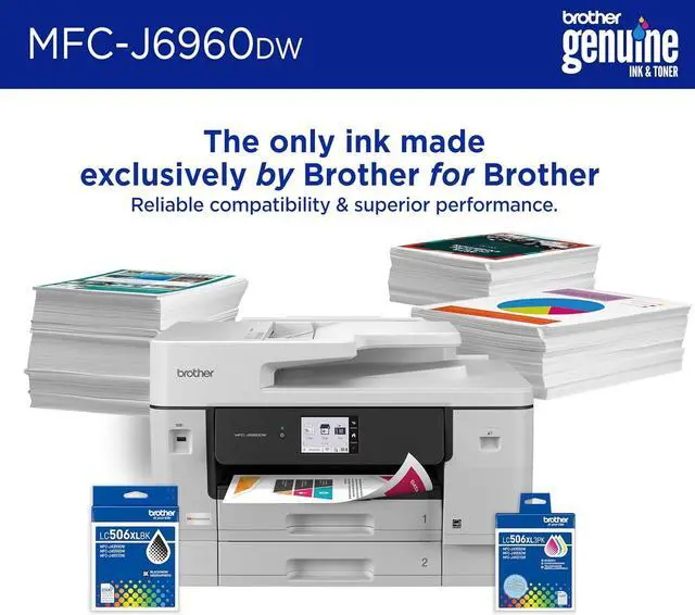 BROTHER GENUINE INK: Reliable performance you can count on. Brother Genuine Ink is quality-tested to work seamlessly with your Brother printer. Choose Brother Genuine LC506 Ink, the only brand Brother recommends for use with your printer.