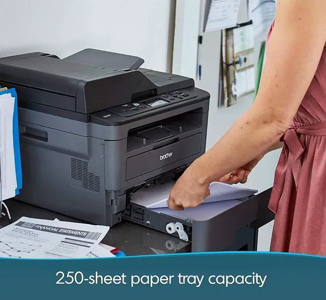 Scanning and copying is made possible through the inclusion of an 8.5 x 11.7" flatbed and a 50-sheet ADF. Also, an optical resolution of 1200 x 1200 dpi for the flatbed and 600 dpi for the ADF ensure that scans are detailed and sharp. For operation, the DCP-L2550DWB has a two-line monochrome LCD, which enables various direct printing and scanning options.