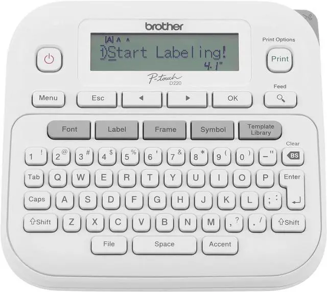 Chaos? Meet organization. The Brother P-touch PT-D220 Home / Office Everyday Label Maker is versatile, easy-to-use, and the efficient way to clear out clutter in any home or office area. What can be organized with a Brother P-touch Label Maker? Almost anything! Featuring a QWERTY keyboard and one-touch formatting keys, this portable label maker makes you a hero of organization. Create calm in cupboards and easily restore order in your home office by identifying your files, sorting the contents of your desk, and organizing cabinets and bookshelves to perfection. Creating labels is practically foolproof! Preview before you print thanks to the 15-character display screen. Have a favorite label youd like to re-print repeatedly? No problem! You can store up to 30 frequently used label layouts for quick reprinting. Go ahead and show off your unique style by choosing from 14 different fonts, 11 font styles, 99 frames, and over 600 symbols. For use with Brother Genuine TZe label tapes. Available in a wide assortment of options including laminated tapes, waterproof tapes, premium tapes with glitter, extra-strong adhesive for uneven surfaces, tamperproof security tapes, and more. Mastering your organizational to-do list just couldnt be any easier or more satisfying. Want to design and print labels on your PC and print on label tapes up to 3/4" (18mm)? Check out the Brother P-touch Home / Office Advanced Connected Label Maker PT-D410.