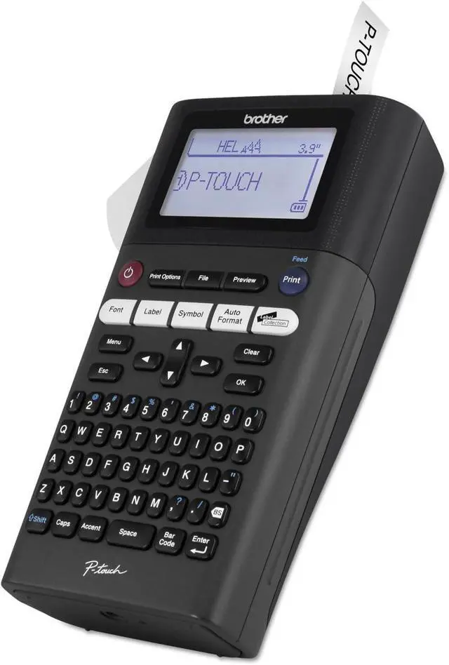 The Brother P-touch PT-H300 handheld label printer is the perfect option for the busy individual on the go. This handheld take it anywhere labeler is a perfect office solution for small business owners and other busy entrepreneurs whose work environment goes much further than just an office desk. Its sleek and lightweight design and the keyboard-style layout permit users to accurately and quickly type in data, while the convenient one-touch keys allow quick and easy label formatting, editing, and printing. A large and easy-to-see Brother Vivid Bright graphical display allows labelling in almost any environment.