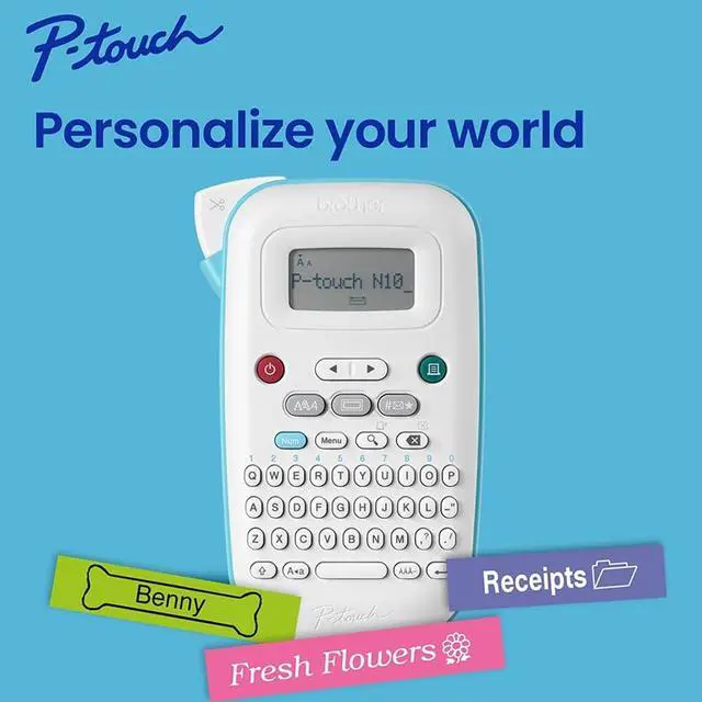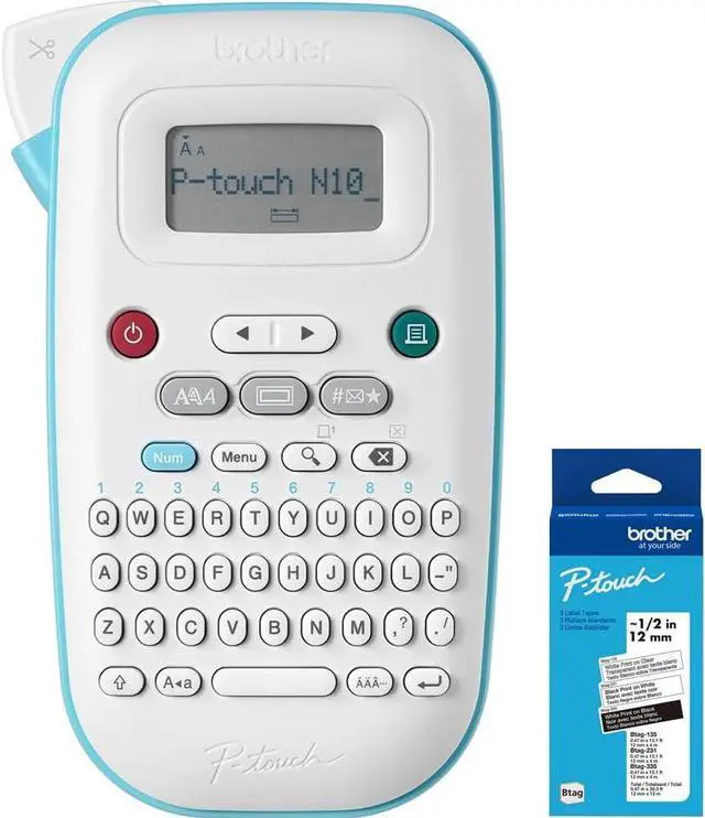 The Brother PT-N10 is a stylish, compact, and easy-to-use handheld label maker designed for everyday labeling around the home or office. With its lightweight design, full QWERTY keyboard, and compatibility with colorful 12mm Brother Btag tapes, it makes organizing simple and fun. Whether labeling school supplies, storage bins, cables, or gift tags, the PT-N10 gives you the creative freedom to personalize labels with various fonts, frames, and symbols. It also allows you to preview your text on the LCD display and save up to 10 frequently used labels for quick reprinting.