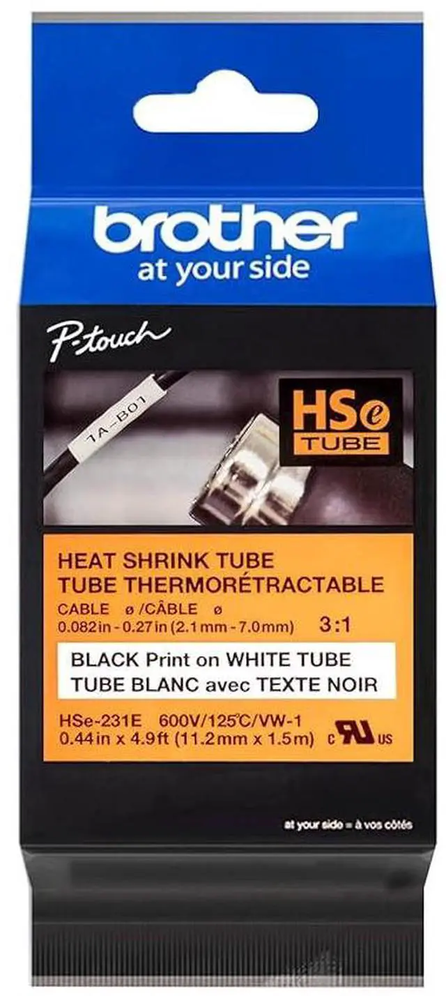 Brother HSe231E 11.2mm (0.44in) Black on White 3:1 Heat Shrink Tube