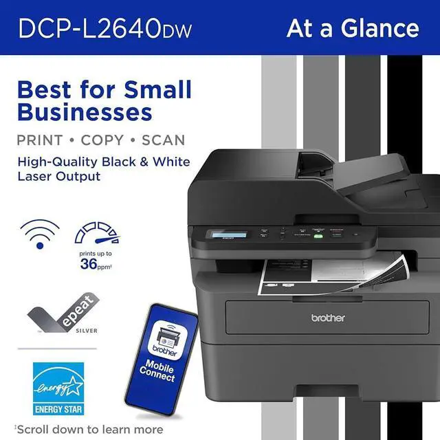 Brother USA AUTHORIZED - Includes 26 Months Extended Protection in ADDITION to the Included FULL Manufacturer Protection | Brother Wireless DCP-L2640DW Compact Monochrome Multi-Function Laser Printer