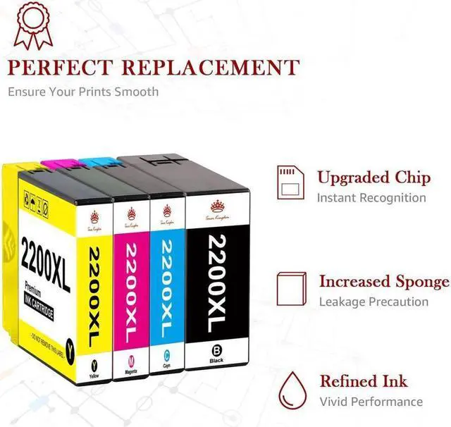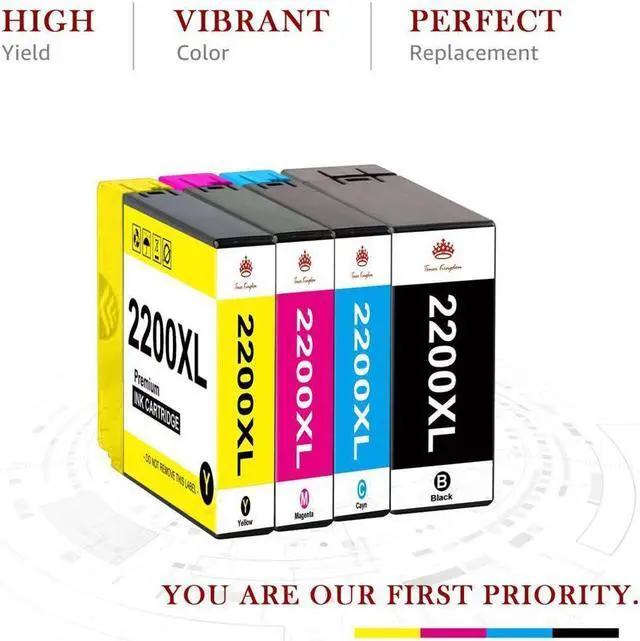 Toner kingdom ink cartridge replacement for 2200 XL are strictly tested with industry quality control processes to perform super result. Fully inspected and guarantee to work as