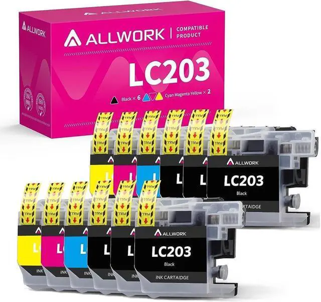 [ Package Includes ] ALLWORK Compatible Brother LC203 LC 203 XL combo pack ink cartridges ( 12 Packs - 6 Black /2 Cyan /2 Magenta /2 Yellow)