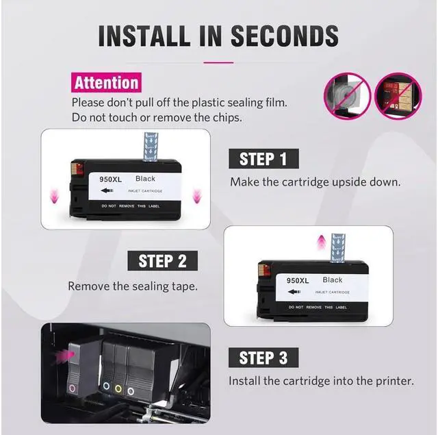 [ Package Contents ] 5 x Packs High Compatible Ink Cartridge for HP 950XL 951XL High Yield (2 x Black 950XL ink cartridges, 1x Cyan 951XL ink cartridges, 1x Magenta 951XL ink cartridges, 1x Yellow 951XL ink cartridges).