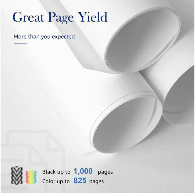 High Page Yield: Up to 1, 000 pages for Black; Up to 825 pages for Color @ 5 percent coverage at A4 paper