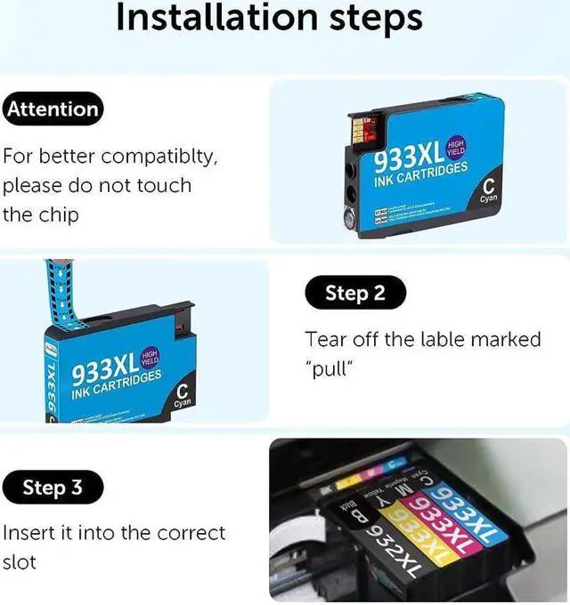 Package Includes: Replacement for 932xl ink cartridges combo pack (1 x 932XL black ink , 1 x 933XL cyan ink, 1 x 933XL magenta ink , 1 x 933XL yellow ink, Total 4 Pack)
