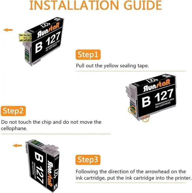 4 Packs Run Star Remanufactured Epson 127 T127 T127120 Ink Cartridges