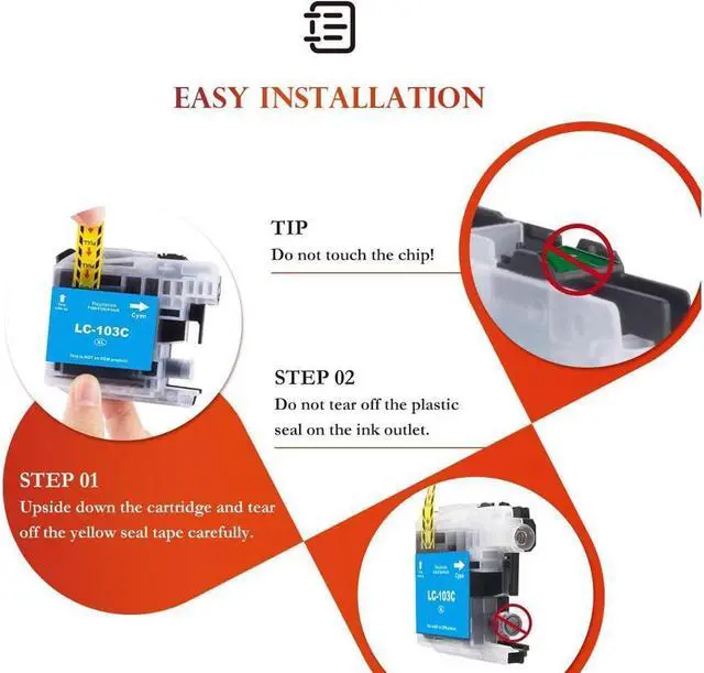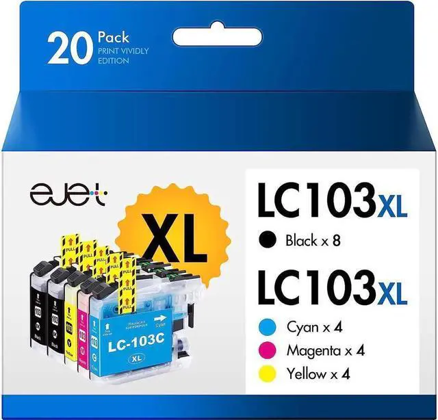 Handy 20-Pack: This is an ejet High Yield ink cartridge replacement for Brother LC-103XL LC103XL LC103 XL 101XL LC101 LC 101 (1 x User Guide, 8 Black, 4 Cyan, 4 Magenta, 4 Yellow)