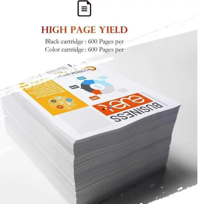 High Page Yield: Up to 600 pages per black ink cartridge & 600 pages per color ink cartridge ( at 5% coverage )