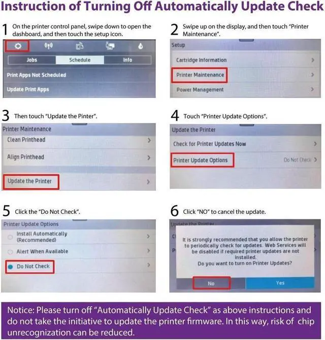 2020. In order to improve the related printer function, HP printers will upgrade the firmware of their printers frequently which will cause some chip recognition failure. Here we suggest you turn off the auto-update check function of your printer.