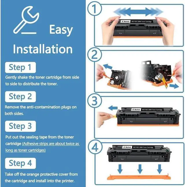 A: When you install the MxVol 206X toner cartridge, your printer may prompts "Non-HP supply installed" and the information button is flashing. Please ignore and wait for about one minute. Question&Answer