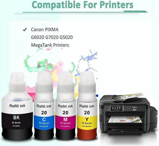 Compatible for G5020 Printer, G6020 Printer, G7020 MegaTank All-in-one Printers; Replacement for G6020 ink; Replacement for G5020 ink; Replacement for G7020 ink.