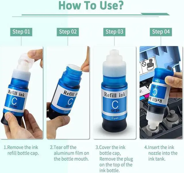 Package Contents: 4 bottles ink refill for