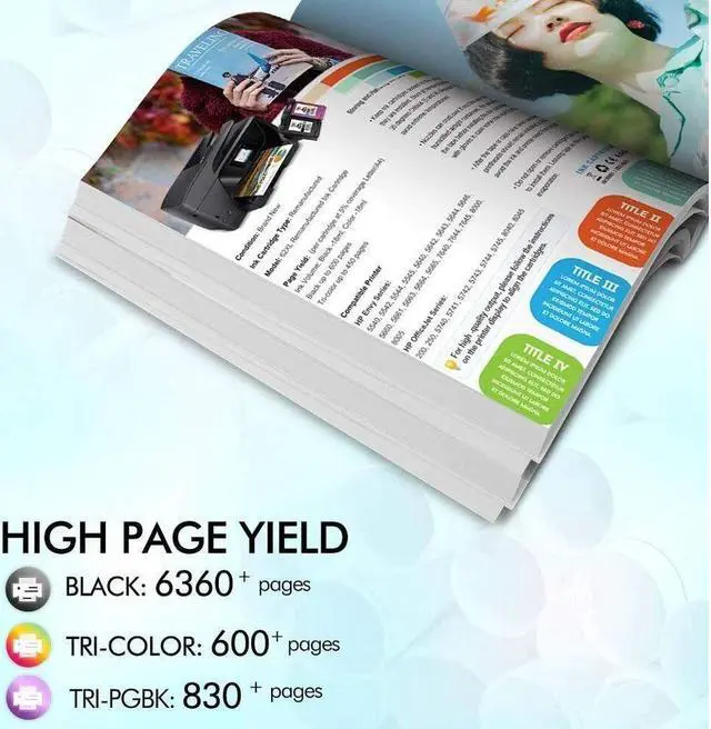 Page Yield: Up to 600 pages per 280 XXL Large Black / 6, 360 pages per 281 XXL Small Black / 830 pages per 281 XXL Cyan, Magenta and Yellow, 9, 140 pages per Photo Blue(at 5% coverage, XXL for extra high page yiled than standard)