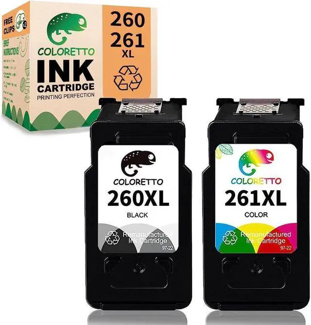 Package Contents: Remanufactured Printer Ink Cartridge Replacement for pg-260XL CL-261XL, 2 pack: 1 Black, 1 tri-color(This is not an OEM product)
