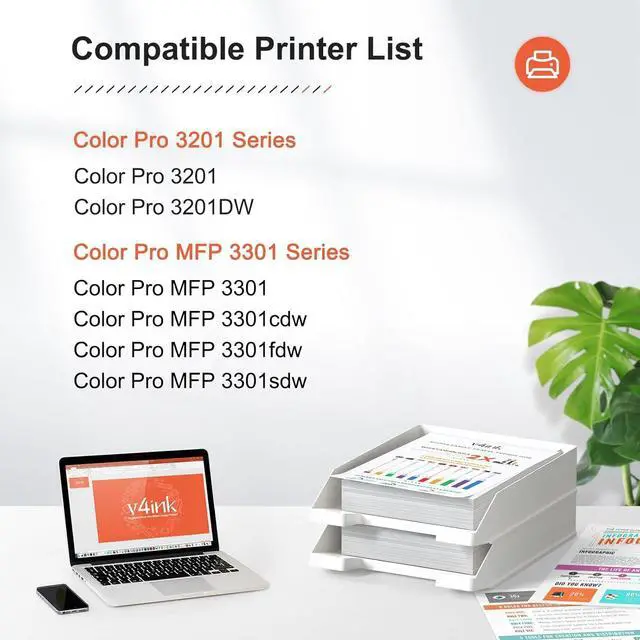 COMPATIBLE WITH - v4ink 218A toner cartridges compatible with HP Color Pro 3201 Series 3201dw Printer; HP Color Pro MFP 3301 Series MFP 3301cdw / MFP 3301fdw / MFP 3301sdw Printer.