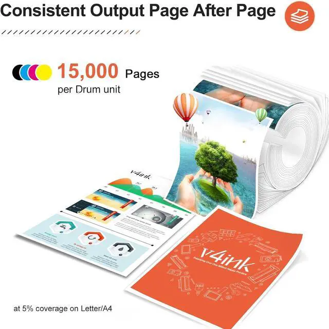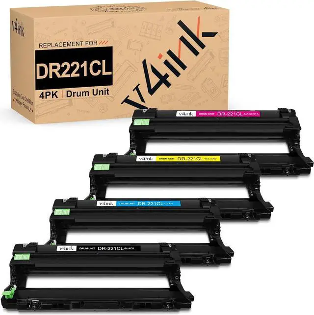 Includes 4 packs (Black, Cyan, Magenta, Yellow) v4ink DR221 DR-221 compatible drum unit replacement for Brother DR221 DR-221 DR221CL DR-221CL works with TN221 TN225 Toner(Drum Only).