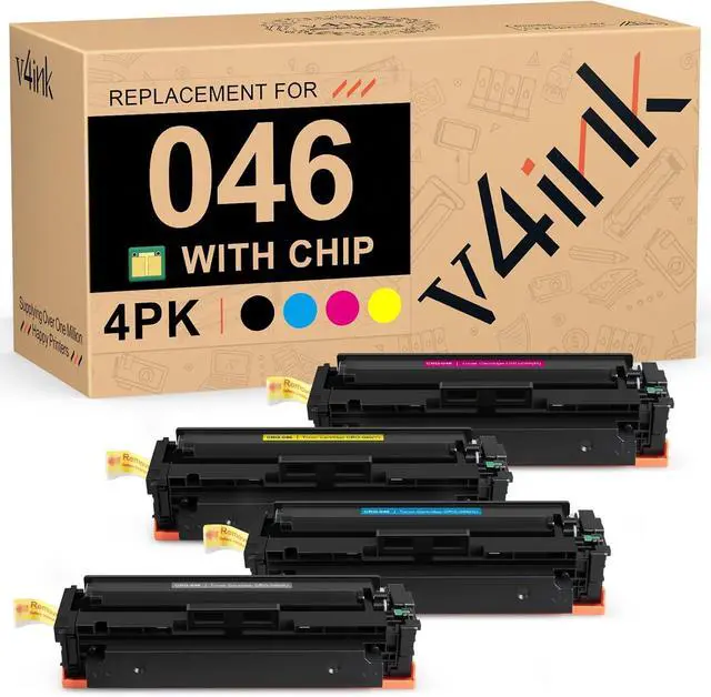 Includes 4-Pack v4ink CRG-046 Black Cyan Magenta Yellow Compatible Toner Cartridges Set.