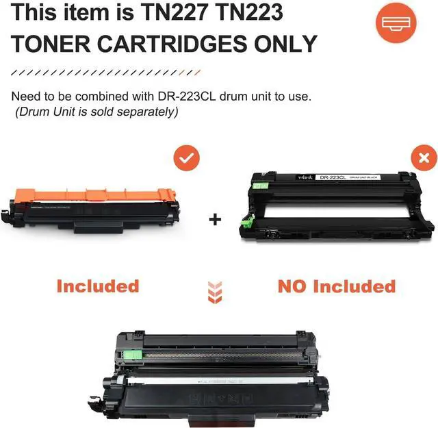 [Includes] TN227 high yield toner cartridge 4 pack with Chip (1 x TN227BK Black Toner, 1 x TN227C Cyan Toner, 1 x TN227M Magenta Toner, 1 x TN227Y Yellow Toner) Toner cartridge ONLY, drum unit not included.
