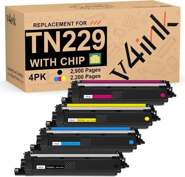Package Includes: 4 packs of v4ink TN229 (New Version) Compatible toner cartridges (Black Cyan Magenta Yellow) and an install instruction. (TN229 toner cartridges Only and DO NOT include the drum unit)