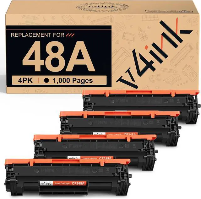 Package includes: 4-pack of v4ink 48A CF248A black toner cartridges (with upgraded IC chip).